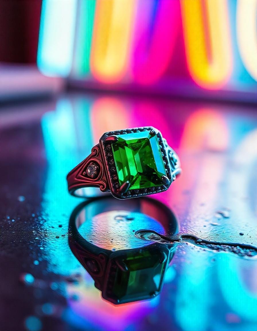 Ezzy walked up and patted Jane on the back. "Who knows? Maybe our next event will be a premium one with birthstones. And even though those aren't real," she pointed to the small glass container holding the green gems, "This one is." She proudly showcased her ring to the customer. It seemed to sparkle extra brightly at the attention.